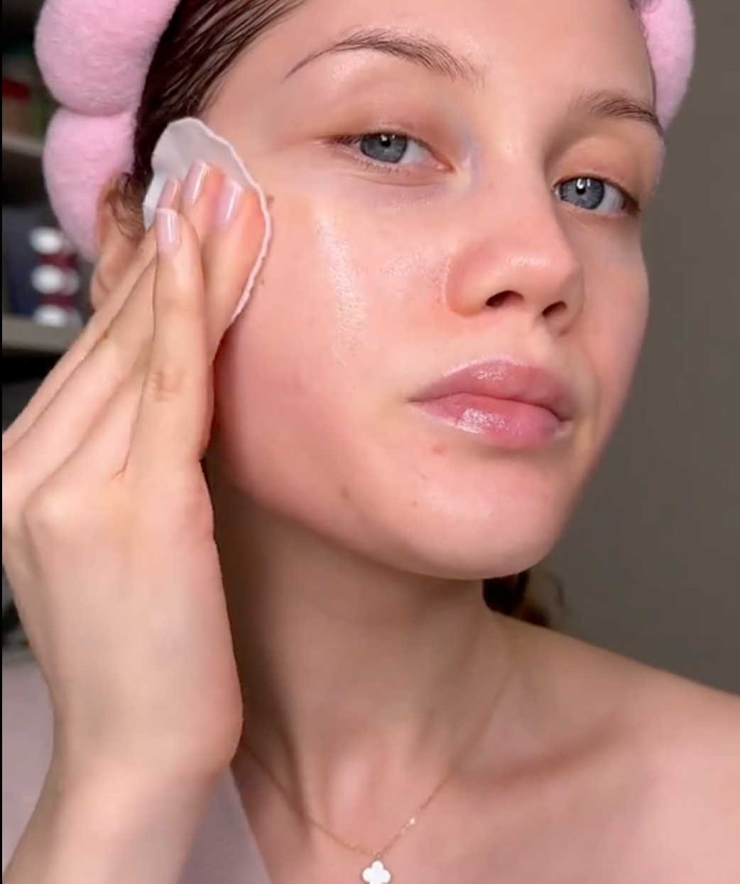 2️⃣ Passez délicatement sur le visage en évitant le contour des yeux.